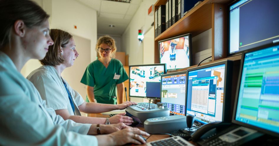 Eine medizinisch-technische Radiologie-Assistentin (MTRA) führt unter Aufsicht eines Facharztes die erste Bestrahlung durch.